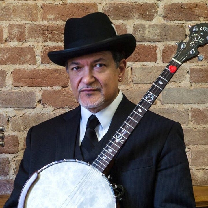 I mean, he also played a five-string banjo, and a guitar, and a teeny-tiny pan flute (called quills), and bones and spoons and other instruments—he’s very talented. But he mostly played a four-string banjo. What’s more, he didn’t tune it to fifths. He tuned it to an open G chord, which is virtually the same tuning as the four high strings of a guitar. And Dom Flemons is in the American Banjo Museum Hall of Fame, so he must know what he is doing.